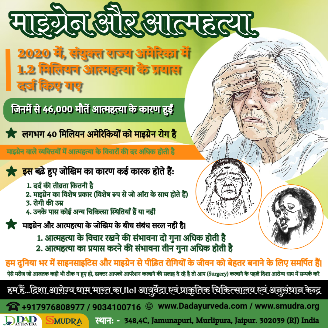 Migraine Treatment Package Disha Arogya Dham carries a completely herbal solution naturally without any side effects. It is a 100% safe DAD Ayurveda formulation developed after long clinical research and trials.